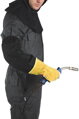 Made of flame-retardant Proban. Excellent protection against sparks, spatter and heat. Short sleeves have elasticated ends. Available in pairs.